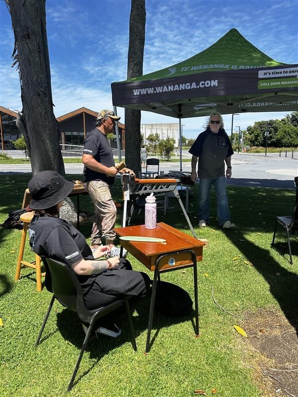 The event also showcased the richness of mātauranga toi. The carving team set up outside, demonstrating the whakapapa and stories embedded in their mahi, while the weavers opened their space indoors for visitors to experience the beauty and depth of raranga firsthand. The live demonstrations offered an inspiring glimpse into the cultural knowledge woven throughout the Wānanga’s programmes.